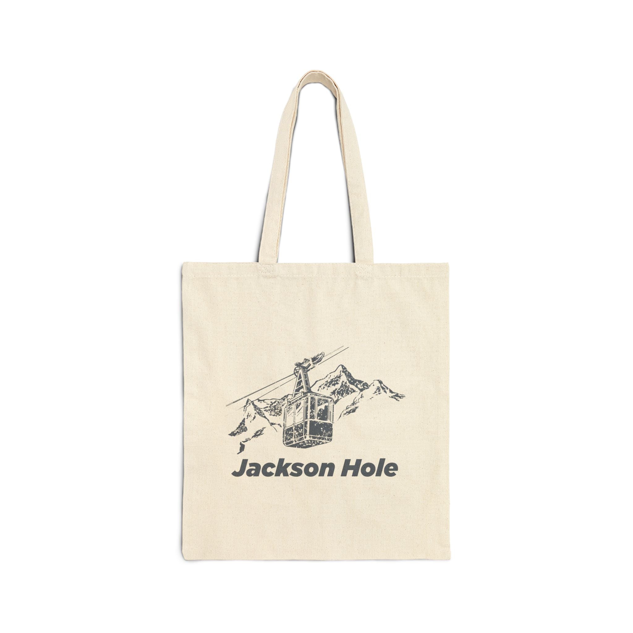 This 100% cotton Jackson Hole bag comes in one size 15" x 16" perfect for everyday wear. This Jackson Hole, Wyoming tote is great for a trip to the gym, beach or store, it's durable and will last for years. The Jackson Hole bag features 20" handles (made from the same canvas), making it easy to carry even with a week's worth of shopping. .: 100% cotton canvas .: Available in natural and black colors .: Heavy fabric (12 oz/yd² (406.9 g/m²)) .: Sewn-in label
