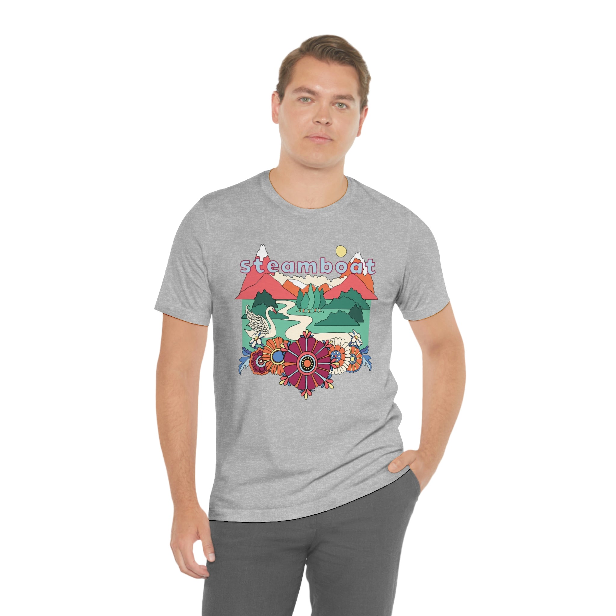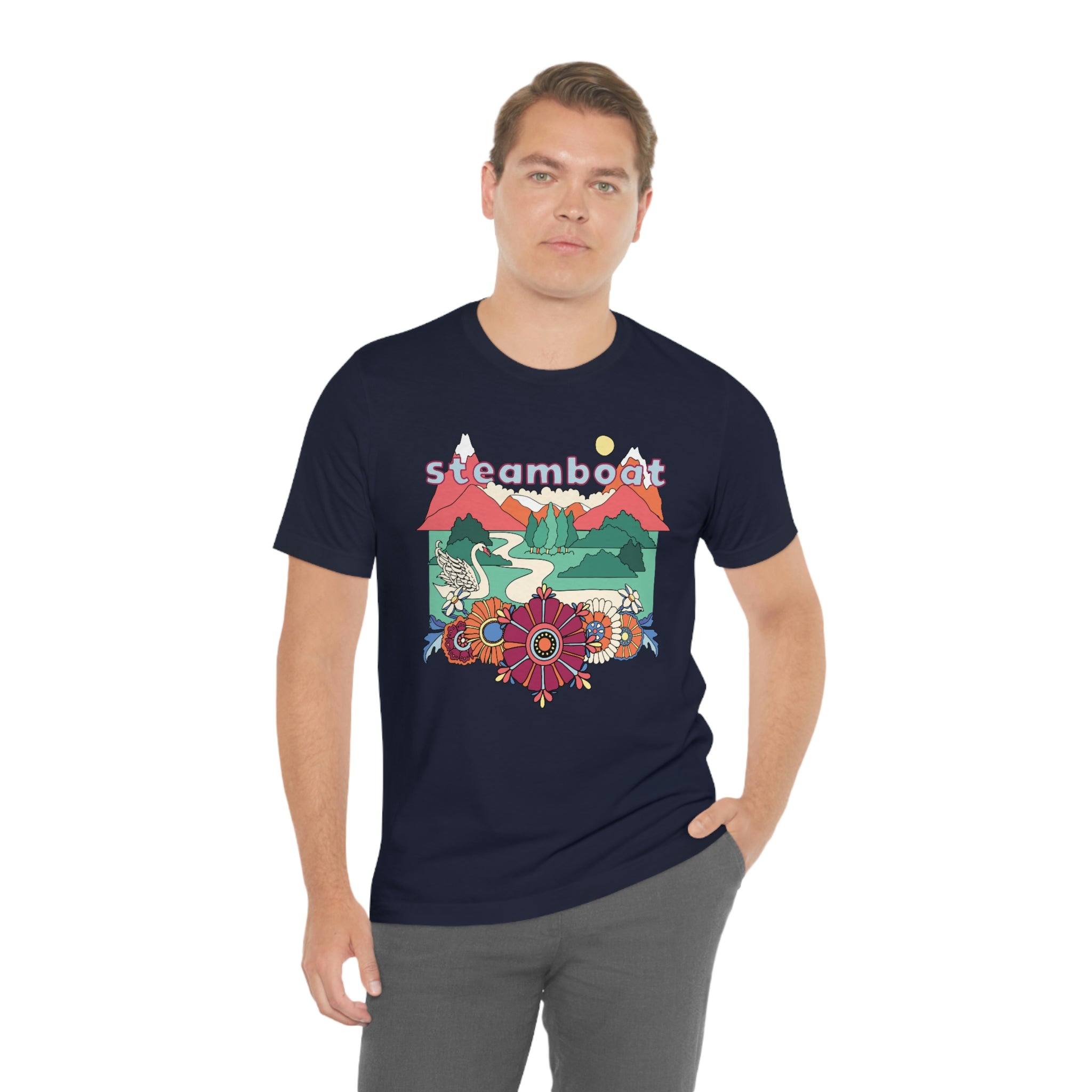 This soft jersey unisex Steamboat, Colorado t-shirt, is perfect for a women or man and has a great Colorado design. It is 100% soft cotton, runs true to size and comes in a variety of colors! You will love wearing this t-shirt all over Steamboat, with it's soft cotton feel.