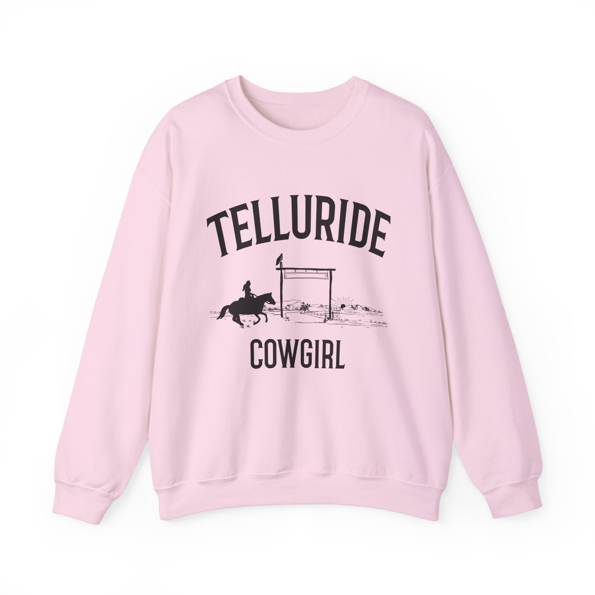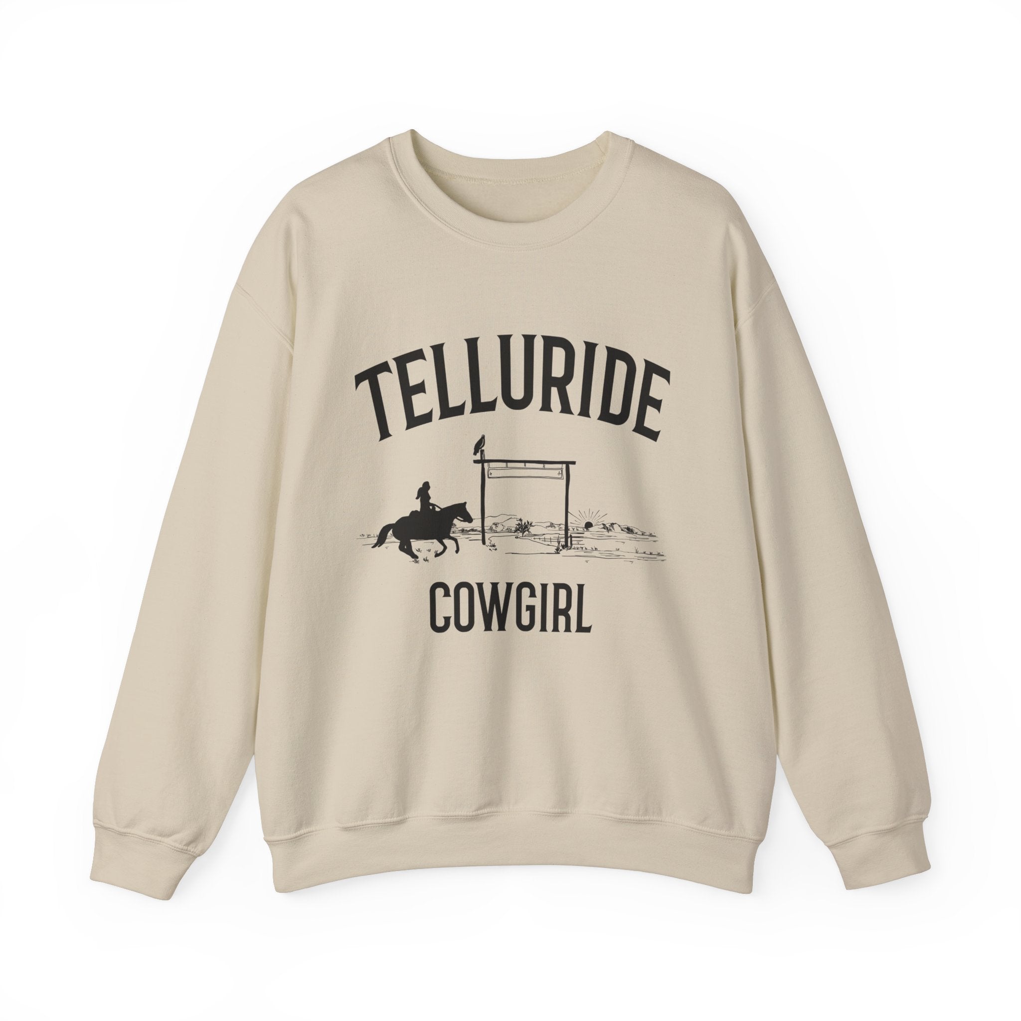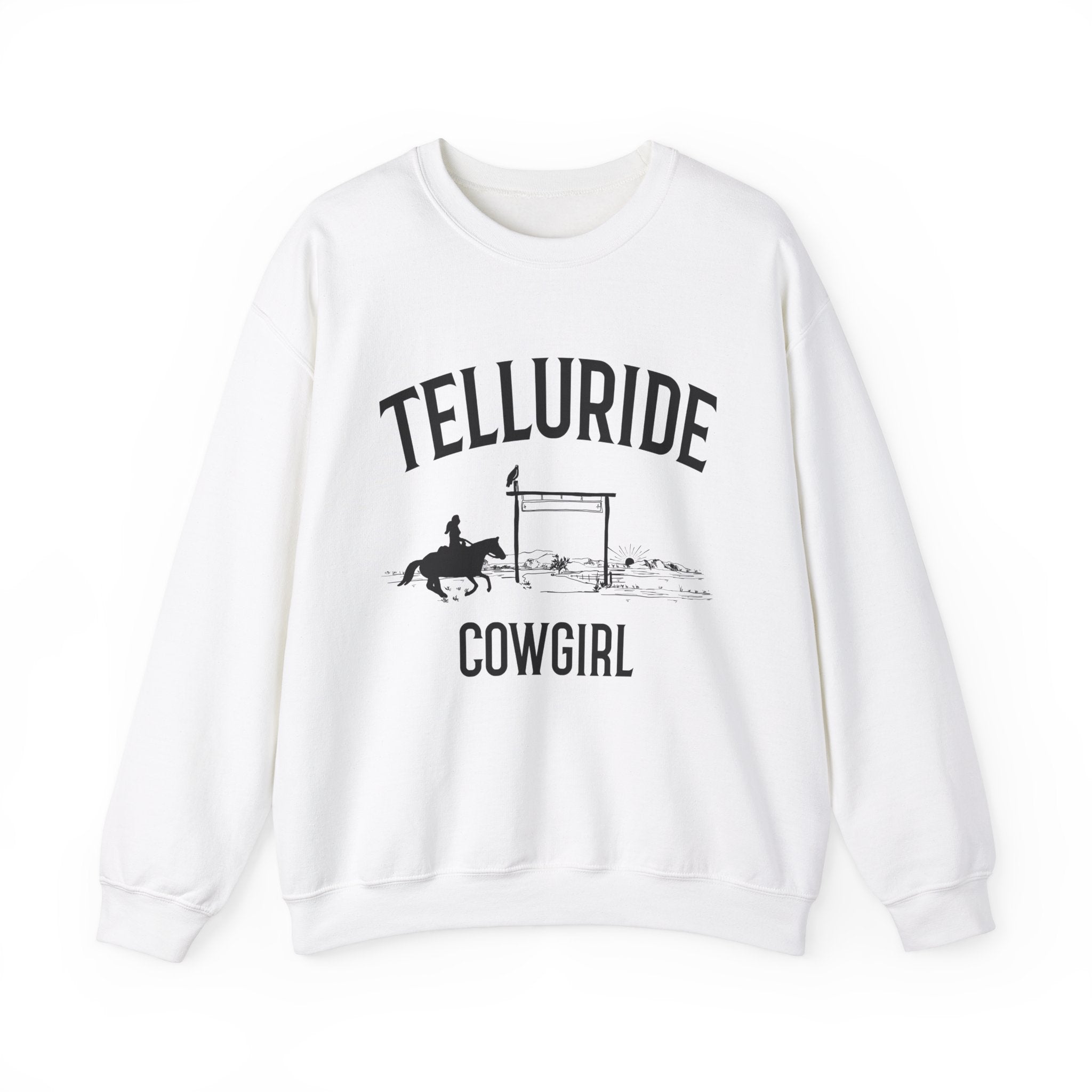 This Telluride, Colorado Sweatshirt with a Colorado Cowgirl design exudes a rugged and adventurous vibe, perfect for outdoor enthusiasts and nature lovers. Made with a cozy fabric blend, This Telluride sweatshirt provides warmth and comfort during the colder months. Ideal for adults looking for a durable and stylish Telluride sweatshirt to wear while exploring the great outdoors or for casual everyday wear. Product features - Cozy fabric blend of 50% cotton and 50% polyester for warmth - Ribbed knit collar for elasticity and shape retention - Embroidery decoration available on left or center chest - Durable double-needle stitching for longevity - Great for outdoor enthusiasts and nature lovers Care instructions - Machine wash: cold (max 30C or 90F) - Non-chlorine: bleach as needed - Tumble dry: low heat - Do not iron - Do not dryclean