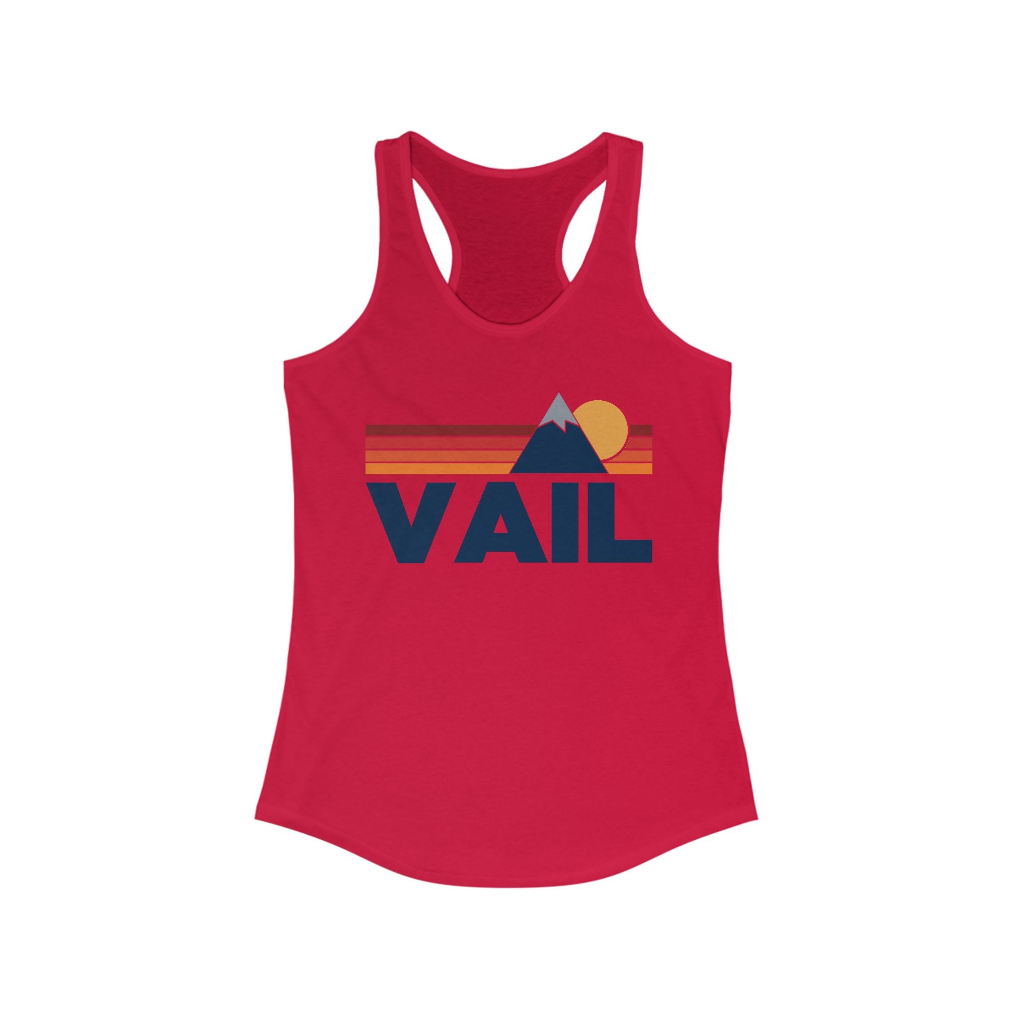 This Vail, Colorado Women's Racerback Tank Top is perfect for those who love a sporty and lightweight option for an active lifestyle. The tank offers a comfortable classic fit with a scooped neckline, making it great for high-performance activities. The fabric has a luxurious feel and is perfect for printing, while the tear-away label ensures a scratch-free experience. Ideal for women looking for a stylish and functional Vail tank top for daily wear or workouts. Perfect for casual wear, gym sessions, outdoor activities, and summer outings in Vail, Colorado.