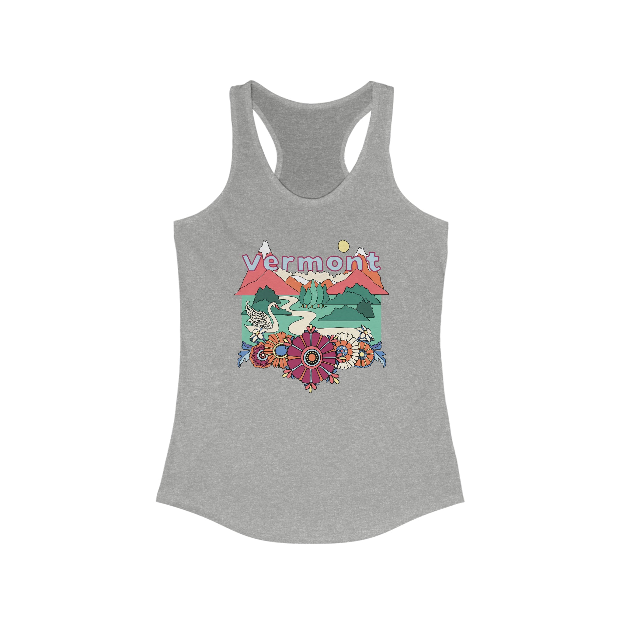 This Vermont retro slim fit racerback tank-top will turn heads. This is a great Vermont tank-top to wear when you are at yoga class, hiking or working out. It's a slim fit so runs smaller that usual and has a 60% soft cotton/40% polyester blend. It's a great gift for anybody who loves Vermont!