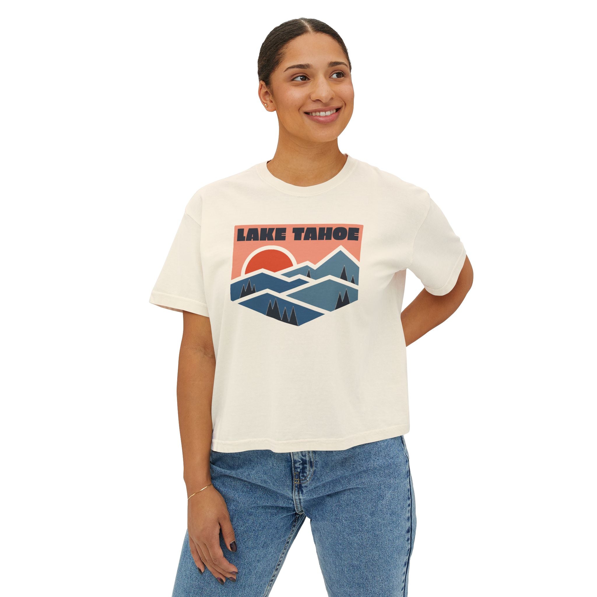 Women's Lake Tahoe, California Boxy Graphic Tee - Slightly Cropped