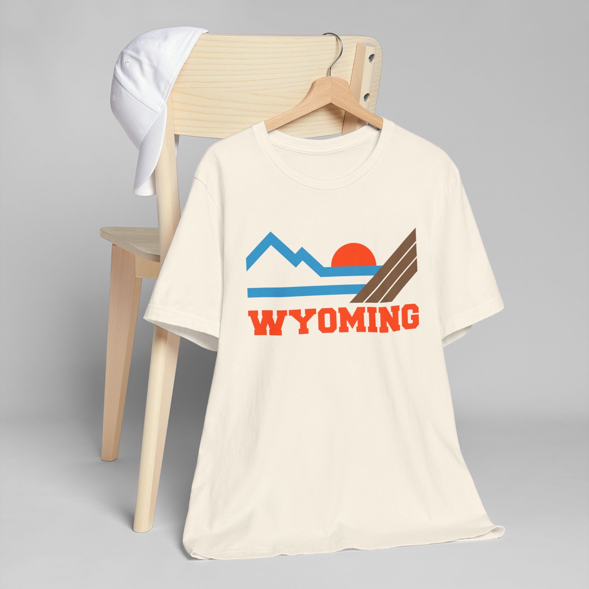 Light, breathable, and quietly bold — this relaxed-fit Wyoming tee carries the crisp edges of northern landscapes right into everyday wear. The graphic reads like a postcard: stylized peaks, a low sun, and clean geometric lines in warm, vintage tones with Wyoming printed beneath. It’s the kind of shirt you reach for when you want to feel outdoorsy without overdressing: layer it under a flannel for a trail morning, throw it on after a ferry ride, or wear it around town when you want a subtle nod to wide-open places. Soft cotton sits against the skin while the crew neckline and retail fit keep the silhouette approachable and easy to move in. There’s a lived-in, adventurous vibe to the design — calm, proud, and quietly nostalgic. Product features - 100% combed ring‑spun cotton (color variations may include polyester blends) - Super lightweight, breathable fabric (4.2–4.3 oz/yd²) for all-day comfort - Ribbed crew neckline and shoulder tape for shape retention and durability - Side seams and retail fit hold structure while allowing easy layering - Tear-away label (note: fulfillment may apply a printed neck label) Care instructions - Machine wash: cold (max 30C or 90F) - Non-chlorine: bleach as needed - Tumble dry: low heat - Iron, steam or dry: low heat - Do not dryclean