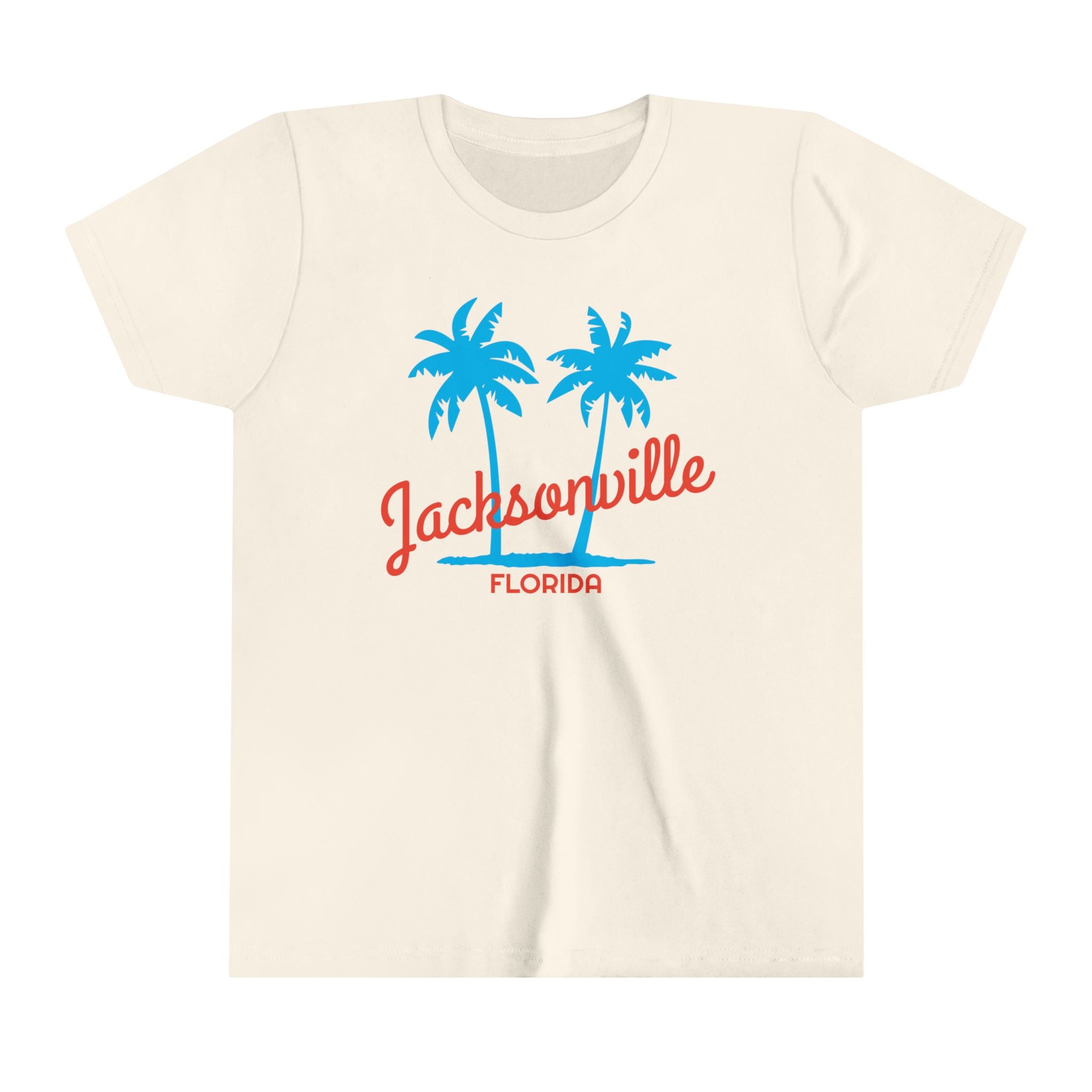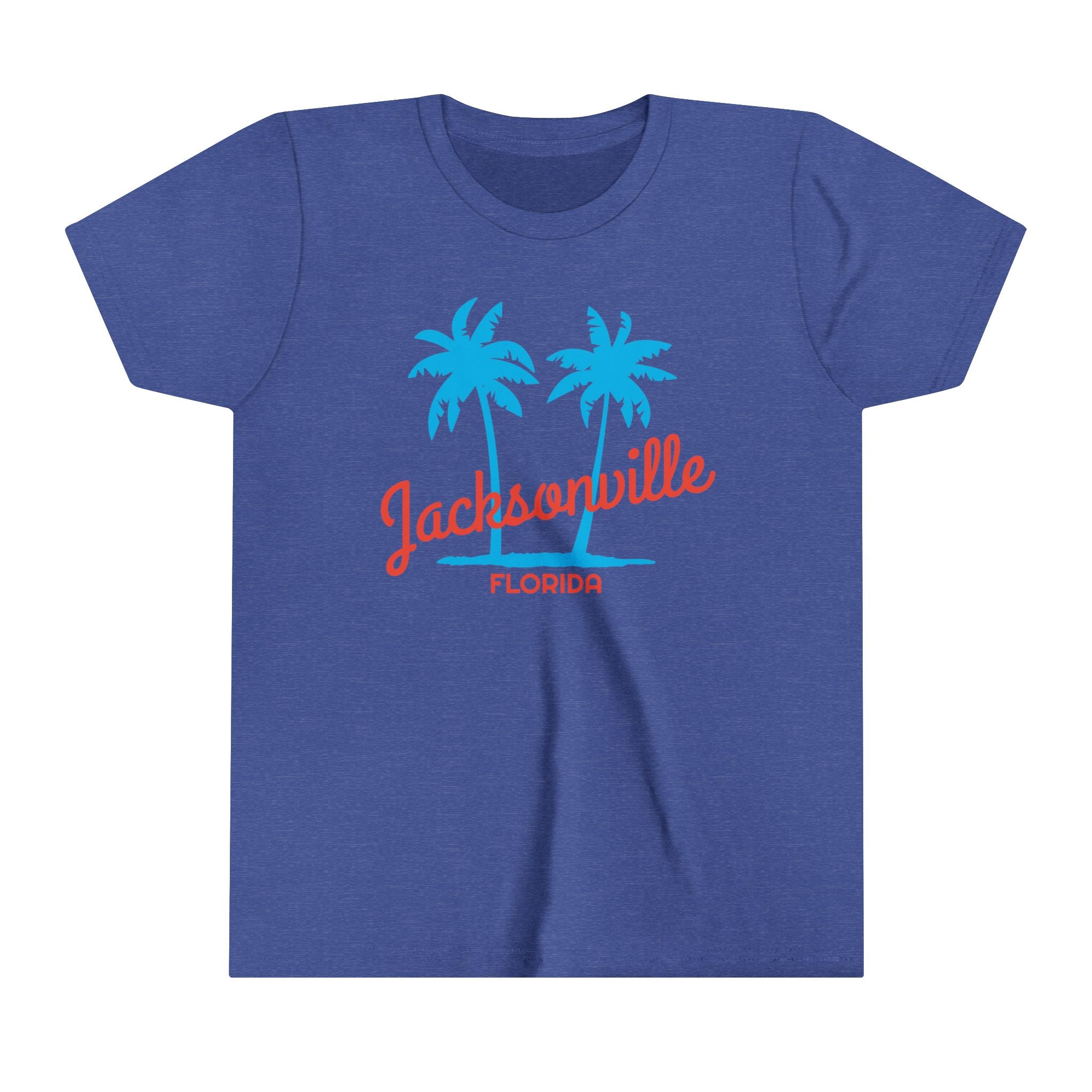 **Please double check the size chart below prior to ordering** This Jacksonville, Florida youth t-shirt is perfect for anybody who loves to was born in or likes to spend time in Jacksonville. It's also a great Florida t-shirt for anybody who lives in Florida and has a child. About our Youth T-Shirts .:: Made with extra lightweight, airlume-combed, ring-spun cotton (4.2 oz/yd² (142 g/m²)), this tee is highly comfy to wear and supremely soft to the touch. .:: The retail fit ensures a perfect, comfy fit in all situations while the crew neckline delivers a versatile, modern, and clean-cut style. .:: All tees come with a tear-away label for a scratch-free wearing experience. Bella+Canvas is part of the Fair Labor Association and is Platinum WRAP certified. This means all blank products manufactured in the US and internationally are made in humane, sustainable way, under a strict no-sweatshop policy. .:: Fabric blends: Heather colors - 52% cotton, 48% polyester, Black and Athletic Heather - 90% cotton, 10% polyester. Size Chart: Small: Width 15.25" Length 20.87" Medium: Width 16.26" Length 22.13" Large: Width 17.24" Length 23.39" X-Large: Width 18.23" Length 24.37"