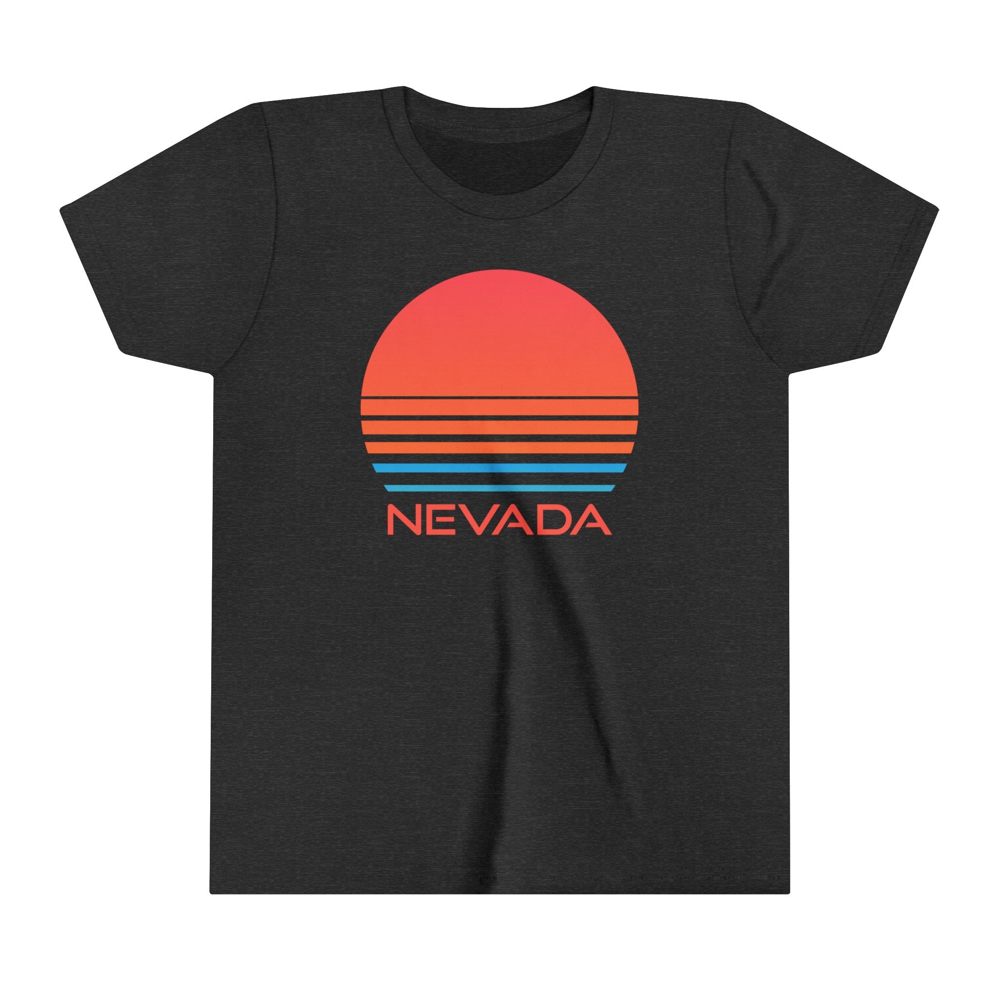 **Please double check the size chart below prior to ordering** This Nevada youth t-shirt is perfect for anybody who loves to was born in or likes to spend time in Nevada. It's also a great Nevada t-shirt for anybody who lives in Nevada and has a child. About our Youth T-Shirts .:: Made with extra lightweight, airlume-combed, ring-spun cotton (4.2 oz/yd² (142 g/m²)), this tee is highly comfy to wear and supremely soft to the touch. .:: The retail fit ensures a perfect, comfy fit in all situations while the crew neckline delivers a versatile, modern, and clean-cut style. .:: All tees come with a tear-away label for a scratch-free wearing experience. Bella+Canvas is part of the Fair Labor Association and is Platinum WRAP certified. This means all blank products manufactured in the US and internationally are made in humane, sustainable way, under a strict no-sweatshop policy. .:: Fabric blends: Heather colors - 52% cotton, 48% polyester, Black and Athletic Heather - 90% cotton, 10% polyester. Size Chart: Small: Width 15.25" Length 20.87" Medium: Width 16.26" Length 22.13" Large: Width 17.24" Length 23.39" X-Large: Width 18.23" Length 24.37"