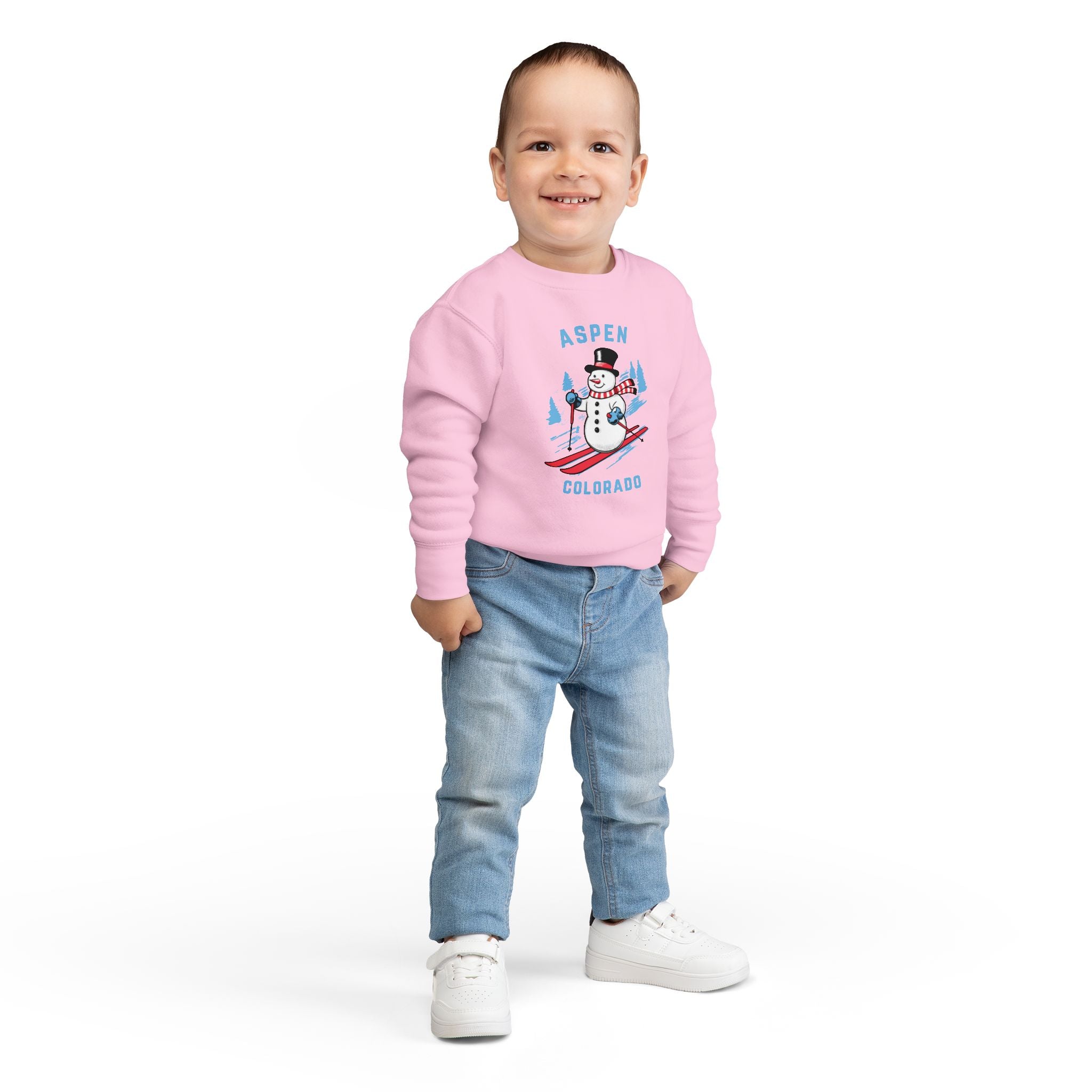 Aspen, Colorado Toddler Sweatshirt - Skiing Snowman Aspen Toddler Crewneck Sweatshirt