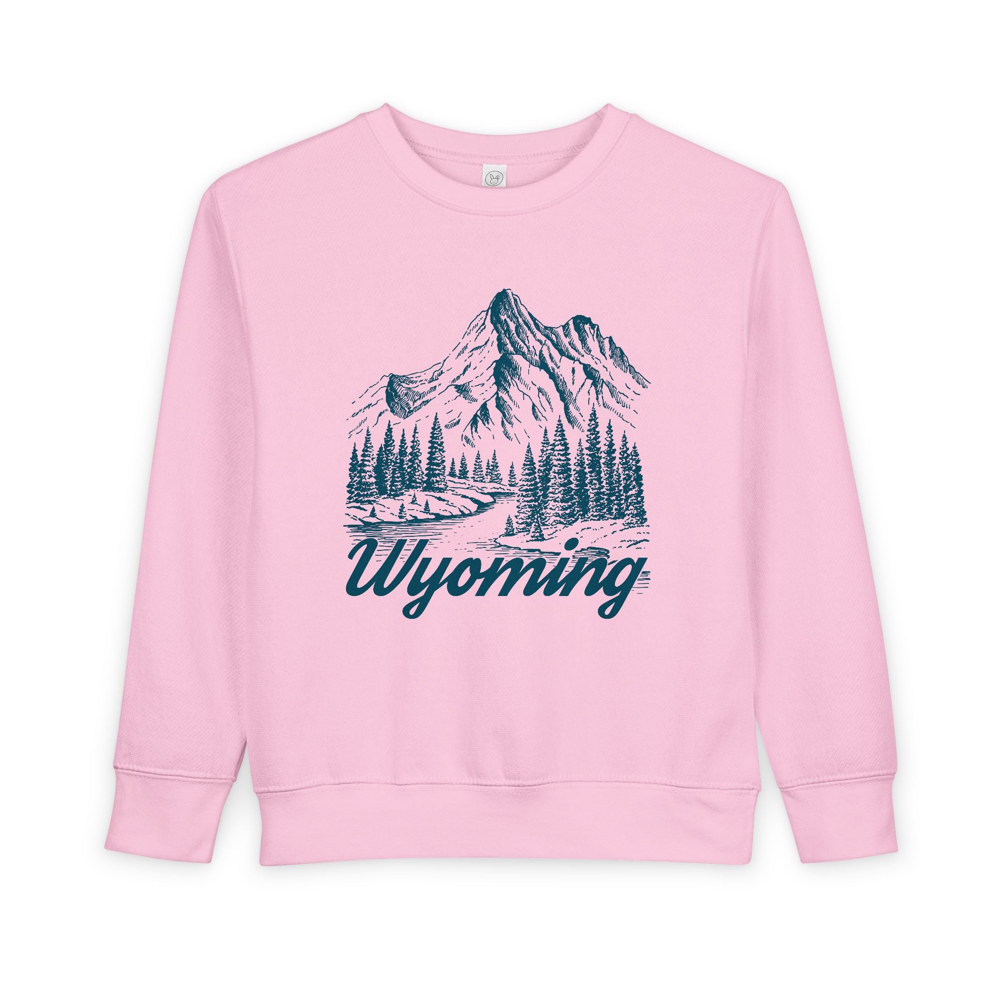 Stay cozy and stylish with this Wyoming Graphic Toddler Sweatshirt featuring a stunning mountain illustration. Perfect for nature lovers, hikers, and outdoor enthusiasts. Ideal for casual wear, travel, and everyday adventures. It's a great Wyoming toddler crewneck sweatshirt for any child.